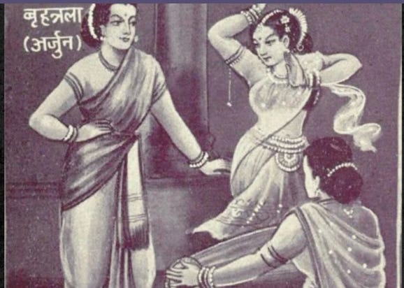 Let’s look closer at Arjuna’s Brihannala episode, the heart of this distortion.